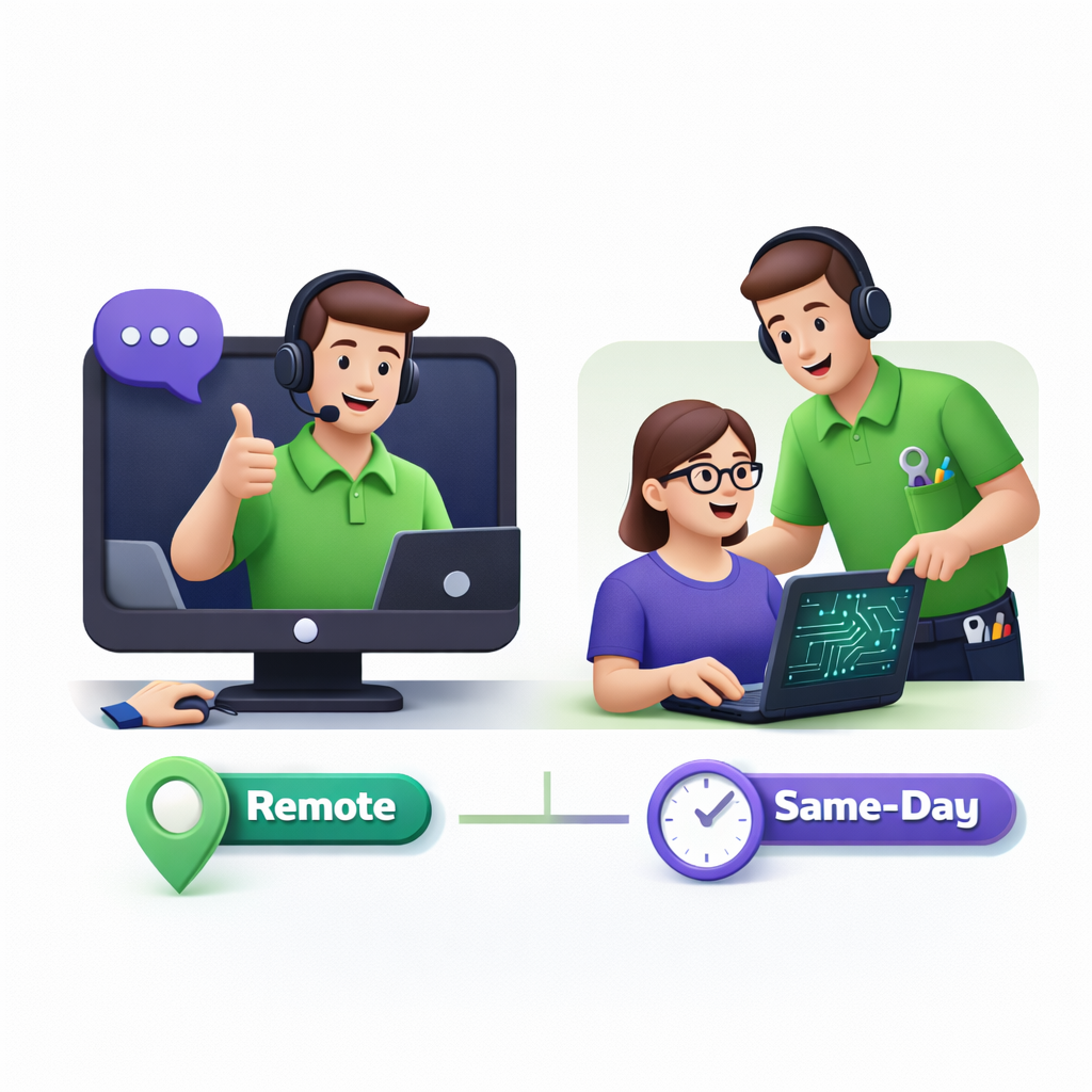 I provide fast, reliable IT support — either remotely or on-site when needed. Same-day service is available whenever possible, with clear pricing and no confusing tech jargon.